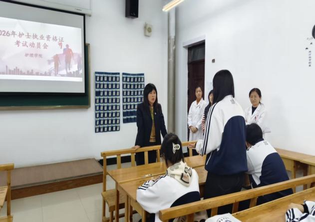 10月29日下午,護理學院在1號教學樓召開2026年護士執(zhí)業(yè)資格證考試動員會,旨在收集教學意見和建議、分析成績問題、明確改進方向并部署教學工作。會議由護理學院院長韓金華主持,護理學院黨支部書記趙麗娜、護考培訓教師、輔導員及2025級護理3+2中高職貫通培養(yǎng)高職階段9-12班全體學生參會。