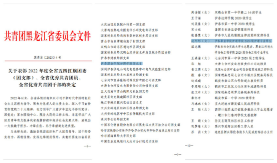 近日,共青團黑龍江省委員會作出關于表彰2022年度全省“兩紅兩優(yōu)”的決定。授予職業(yè)學院護理學院團支部“全省五四紅旗團支部”榮譽稱號,2020 級護理專業(yè)學生趙彤彤“全省優(yōu)秀共青團員”榮譽稱號。
