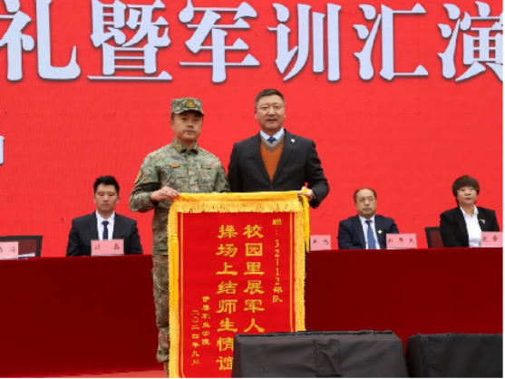 校領(lǐng)導(dǎo)為軍訓(xùn)先進(jìn)集體與個人頒獎