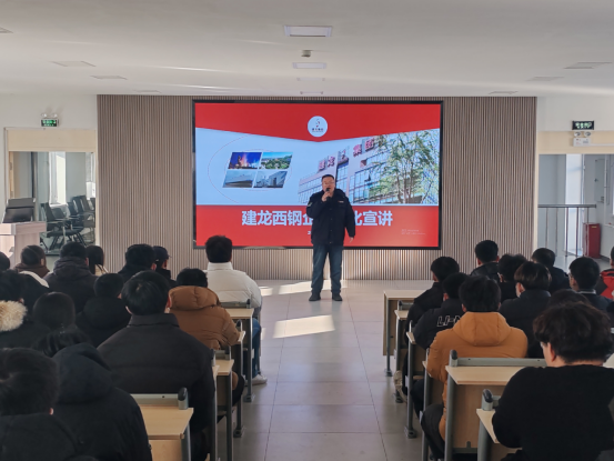 在智控中心,姜兆名主任向師生們介紹在我省領(lǐng)先的智能化鋼鐵冶金控制中心,這套系統(tǒng)可以實(shí)現(xiàn)煉鐵全流程的智能化管理、控制和檢測(cè),極大的提高了生產(chǎn)效率,實(shí)現(xiàn)了生產(chǎn)的信息化。在能源中心的能源管控大廳,師生們觀看了能源工藝的介紹視頻,與現(xiàn)場(chǎng)的工程師進(jìn)行了交流。在建龍西鋼的培訓(xùn)中心,四位建龍西鋼的高級(jí)工程師向大家開(kāi)展了以建龍西鋼企業(yè)文化、生產(chǎn)發(fā)展趨勢(shì)、企業(yè)地緣建設(shè)理念為內(nèi)容的主題講座。