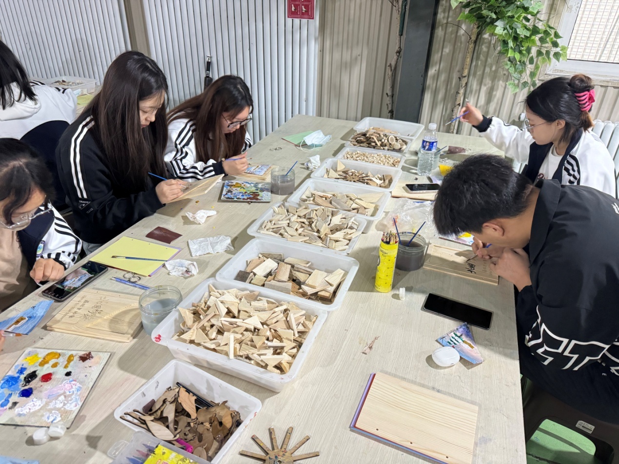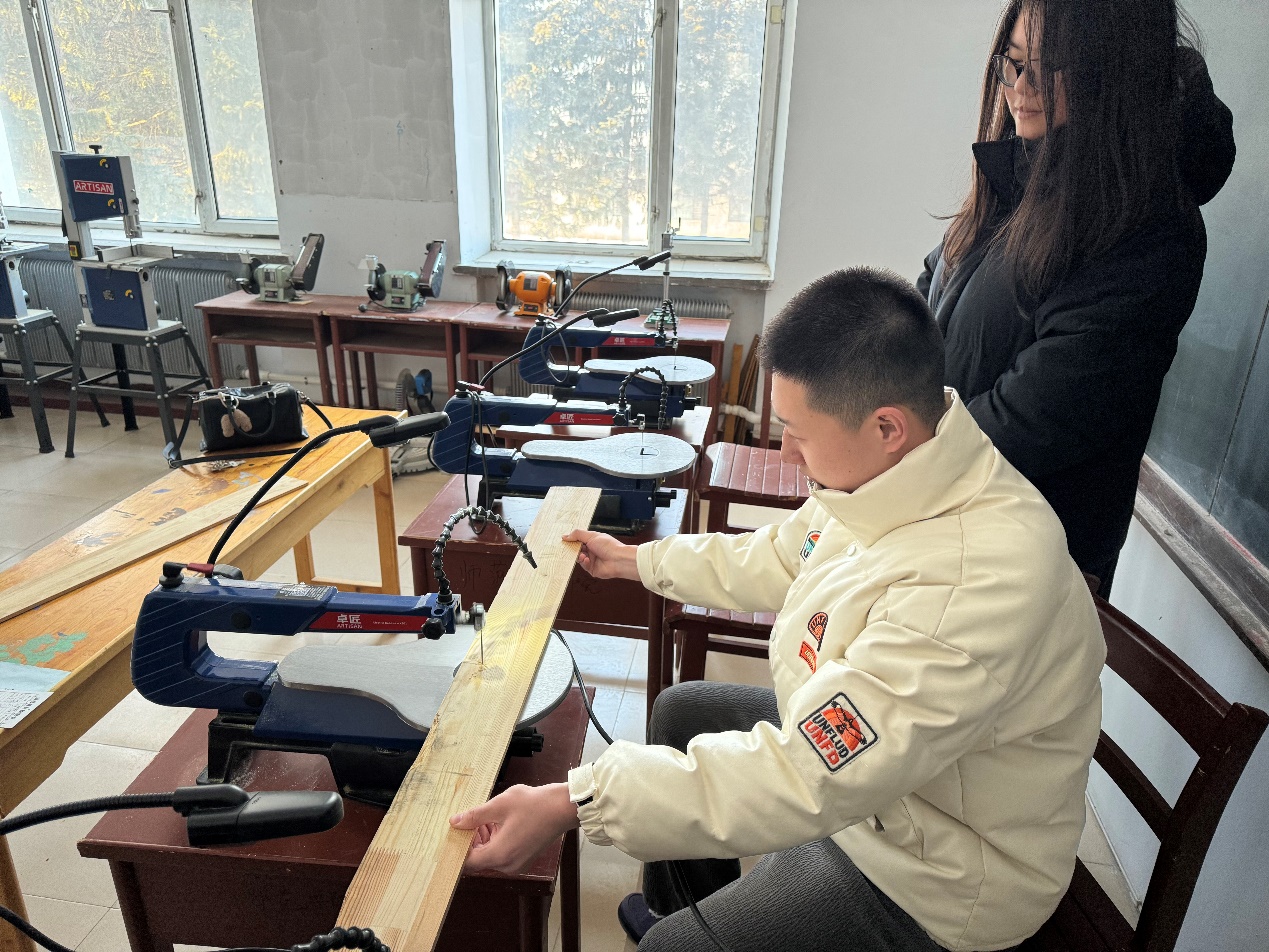 學(xué)生在實(shí)訓(xùn)室進(jìn)行木制品制作