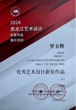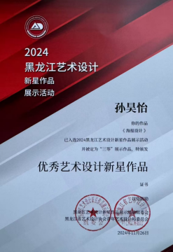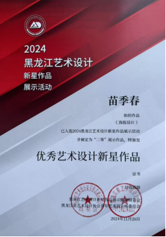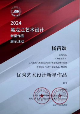 在黑龍江省藝術(shù)設(shè)計協(xié)會青年藝術(shù)設(shè)計師委員會主辦的 2024年黑龍江省藝術(shù)設(shè)計新星作品展示活動中,我院藝術(shù)設(shè)計專業(yè)的學生們大放異彩,榮獲佳績。其中,有 2 名學生的作品榮獲一等獎,3 名學生的作品榮獲二等獎,3 名學生的作品榮獲得三等獎,為學校和專業(yè)贏得了榮譽。