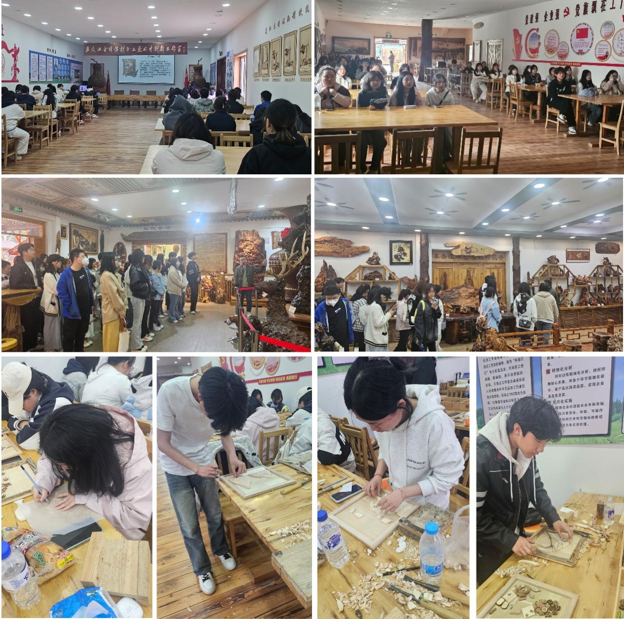 實踐活動一:在興安木藝產(chǎn)業(yè)學院實訓基地美江木藝有限責任公司開展,首屆傳統(tǒng)工藝大國非遺工匠王美江為學生們打造“可觸摸的非遺課堂”,一是以“匠心流韻繪興安”為主題,為同學們講解非遺木拼畫、北沉香、山核桃的歷史傳承、發(fā)展和制作工藝流程,并希望通過此次活動讓更多年輕人積極投身于非遺保護,為傳承發(fā)展注入青春活力。二是通過參觀非遺展廳,感受非遺文化,激發(fā)探索興趣,提升創(chuàng)新意識,增強傳承、弘揚和保護非遺的責任感。三是在實踐環(huán)節(jié)王美江大師用木材邊角料拼貼非遺木拼畫,并與學生們一起現(xiàn)場制作。參與活動的同學們紛紛表示,這種“手把手”地教學拉近了非遺與他們的距離,真正感受到了非遺的魅力。近年來,伊春美江木藝以非遺木拼畫精品實踐課為活動內(nèi)容,將非遺文化融入學校課程體系中,通過課堂、實踐、活動等形式,持續(xù)推進應用型技術技能人才培養(yǎng)創(chuàng)新實踐,增強學生的文化認同感和傳承意識。