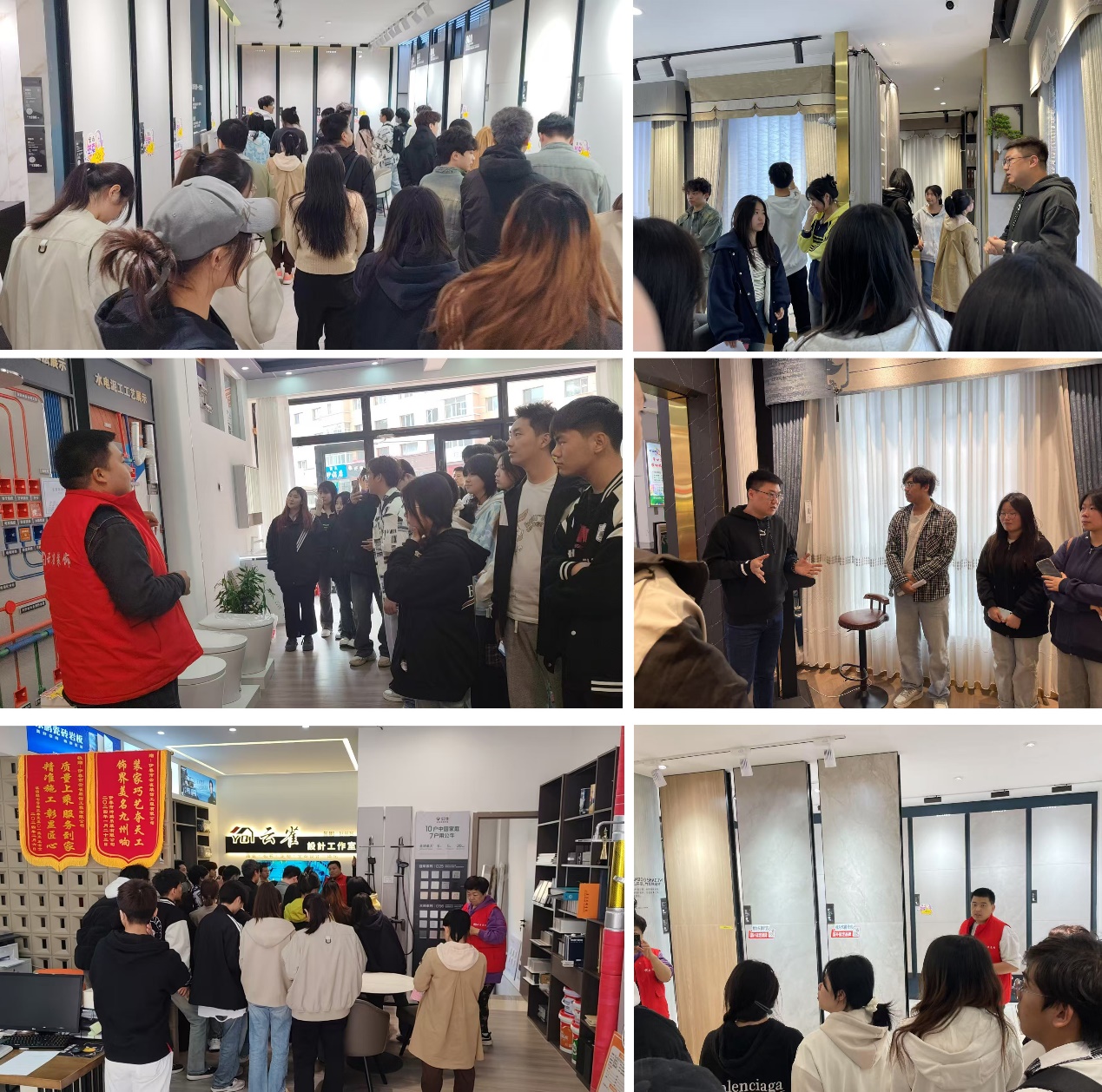 實踐活動二:在伊春云雀建筑裝飾設計公司開展,讓學生在實際項目中接觸和運用非遺元素,提升專業(yè)素養(yǎng)和文化認同感。在公司設計工作室,專業(yè)師傅對學生們進行現(xiàn)場教學和指導,一是講述如何將非遺文化中的圖案和色彩運用到建筑外觀和室內(nèi)裝飾設計中,二是如何將非遺材料和工藝與現(xiàn)代建筑材料和技術相結(jié)合,創(chuàng)造出獨特的視覺效果和質(zhì)感,三是讓學生如何在實際操作中學習和掌握非遺技藝和設計方法。在實木家具區(qū),了解榫卯結(jié)構(gòu)與現(xiàn)代五金連接件的結(jié)合應用,體會到傳統(tǒng)工藝在當代設計中的創(chuàng)新轉(zhuǎn)化等。通過學習,學生們在參與建筑公司的實際項目中運用所學的非遺知識和技能進行設計和創(chuàng)作,并接受公司和學校老師的指導和評價。