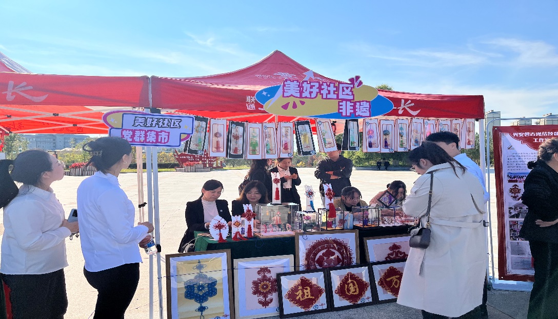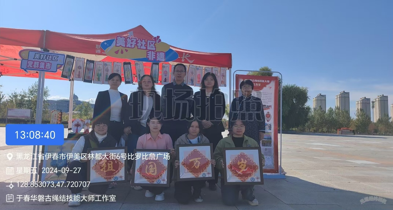 為熱烈慶祝中華人民共和國成立75周年,弘揚愛國主義精神,歌頌偉大祖國繁榮昌盛。2024年9月27日下午,新欣街道辦在比羅比詹廣場舉行了“黨建領(lǐng)航聚合力,同心攜手慶十一”文藝匯演及黨群服務(wù)集市活動。伊春職業(yè)學院磐古結(jié)藝工作室也參加了這次活動。