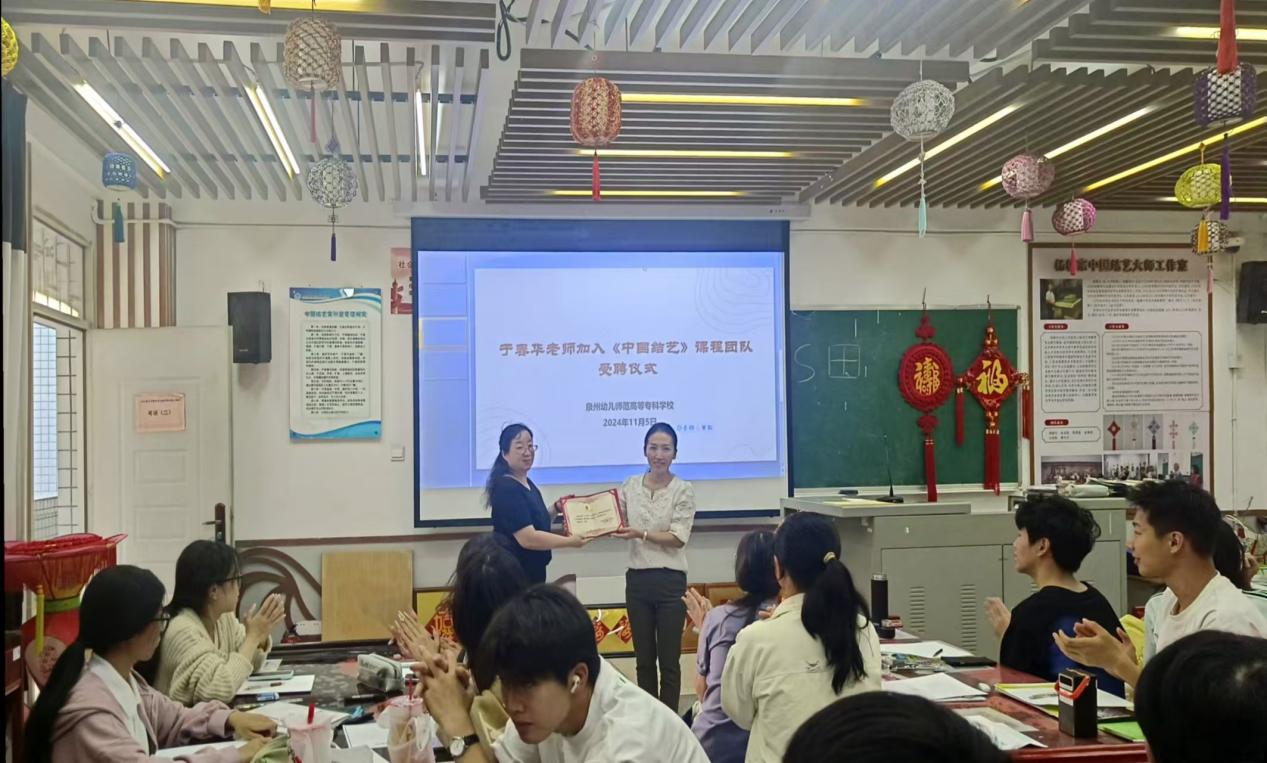 泉州幼兒高等師范??茖W校向于春華老師頒發(fā)了參與中國結國家級課程建設的證書。