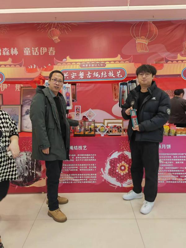 2024年1月31日,磐古結(jié)藝工作室教師參加了伊美區(qū)第二屆“非同‘伊’般、新‘春’拾遺”非遺展實(shí)踐活動。此項(xiàng)活動是響應(yīng)黑龍江省非遺處的號召,各地市組織的”非遺賀新春“活動的一項(xiàng)。工作室的老師們接到這次活動的邀請后,認(rèn)真的準(zhǔn)備了參加活動的展品、布置了展臺,對前來參觀的群眾進(jìn)行了耐心細(xì)致的講解,普及了非遺知識,傳承了中華優(yōu)秀傳統(tǒng)文化。